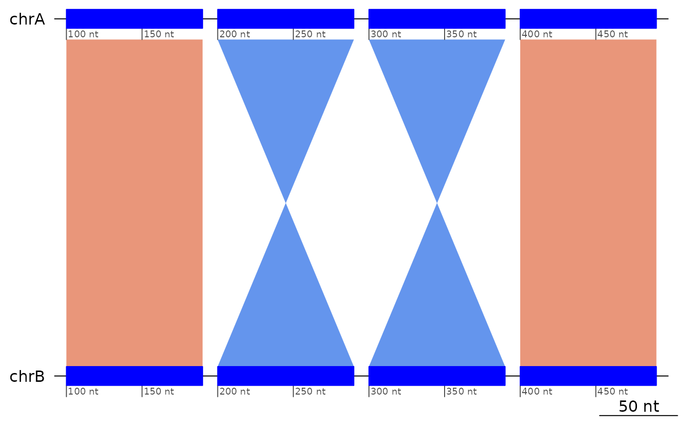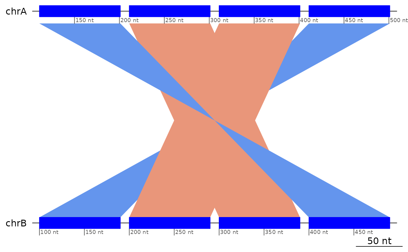 │ chrB:101-200 │ chrB:201-300 │ chrB:301-400 │ chrB:401-500 │ (Query genome)